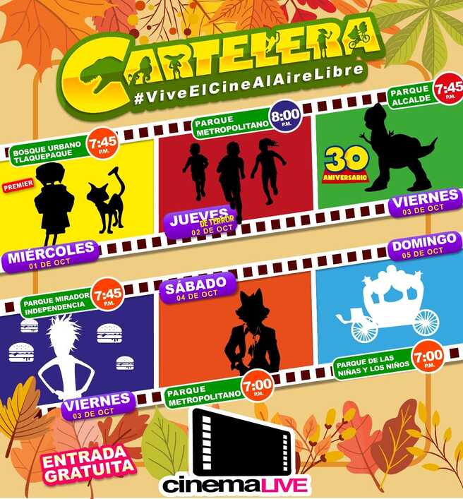 02oct8:00 pm10:00 pmCINEMALIVE8:00 pm - 10:00 pm(GMT-06:00) Parque Metropolitano (Paloma de la Paz), MHC6+JM, Parque Metropolitano, 45010 Zapopan, Jal. Organizador: Cinemalive Guadalajara